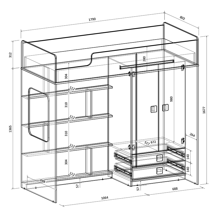 Учебная зона со столом под спальным местом открывает возможности для письменных работ,а также здесь удобно расположить ноутбук.