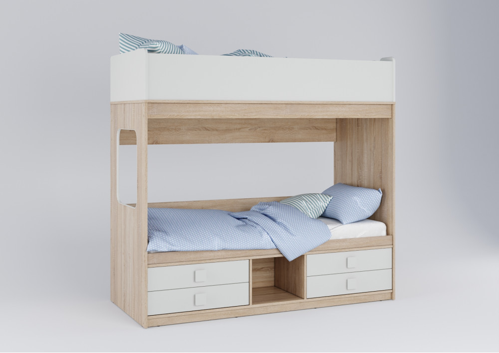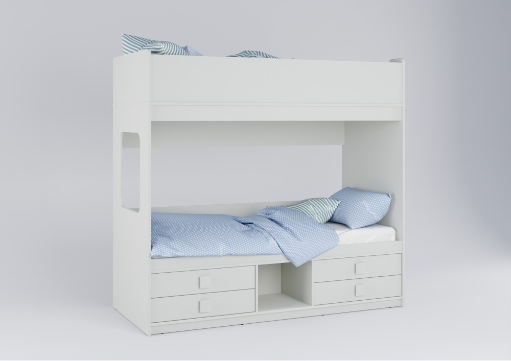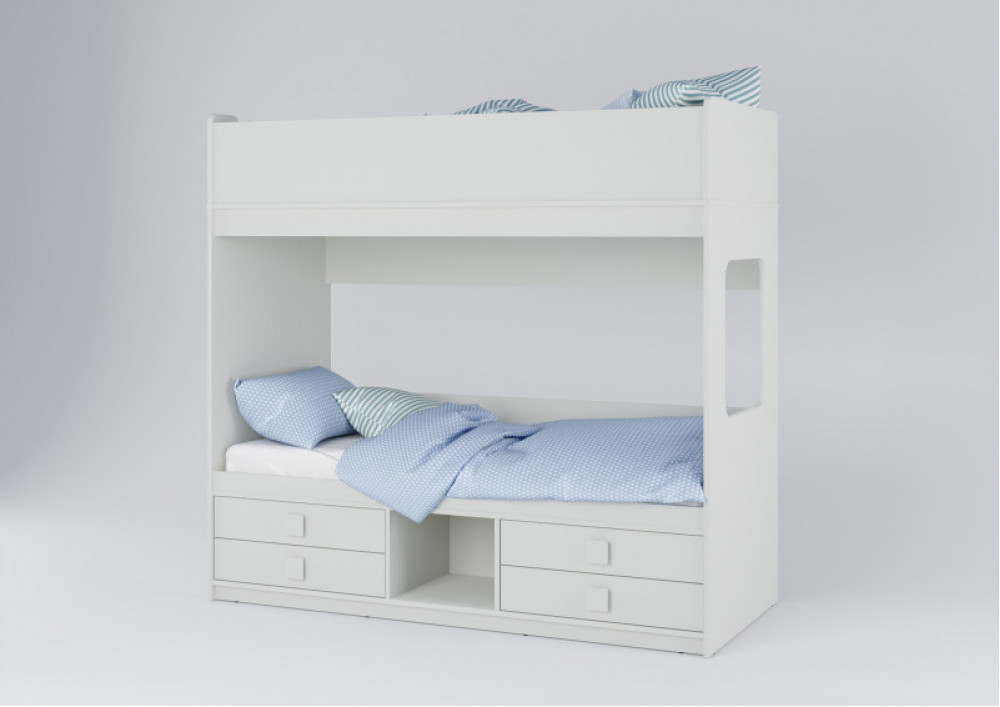 Под нижним ярусом раполагаются 4 выдвижных ящика. Теперь у каждого ребенка есть свои места хранения вещей и игрушек.